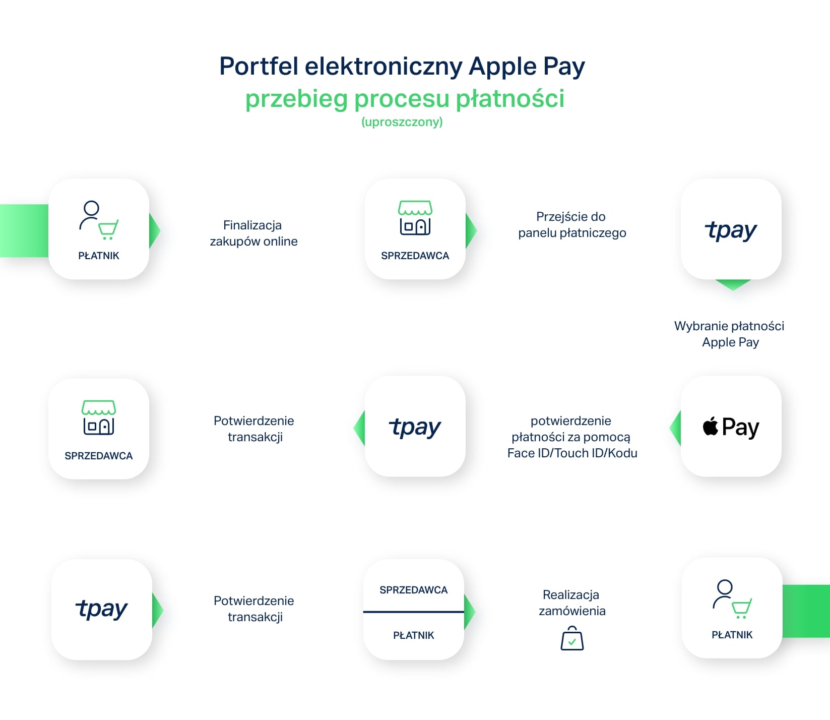 Apple Pay to drugi najpopularniejszy e-portfel w Polsce. Sposób jego działania jest bardzo podobny do Google Pay. Każdy użytkownik urządzenia z „jabłuszkiem” otrzymuje automatyczny dostęp do Apple Pay - portfel jest zainstalowany w każdym iPhone, Apple Watch, Mac i iPad. Użytkownik podaje dane swojej karty płatniczej w aplikacji Apple Pay i może korzystać z tej metody do bezpiecznego płacenia w sklepach internetowych i stacjonarnych. W Stanach Zjednoczonych można również szybko i łatwo wysyłać, odbierać i prosić o płatności przy użyciu Apple Cash.