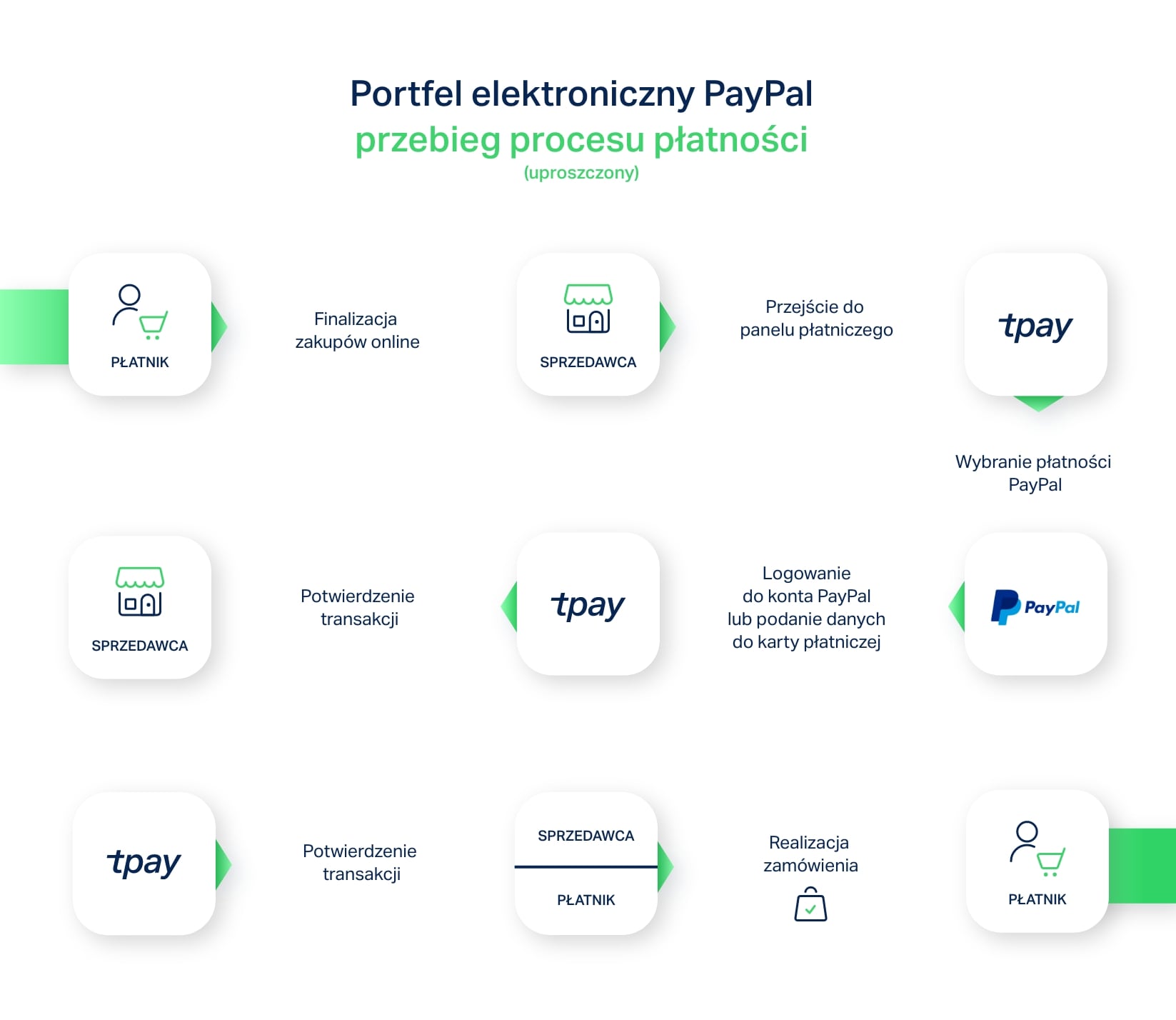 W przypadku wybrania PayPal, płatnik proszony jest o zalogowanie się do swojego konta PayPal lub o podanie danych do karty płatniczej. Podczas korzystania z tego portfela, również otrzymuje mailowe powiadomienia systemowe opisane powyżej.