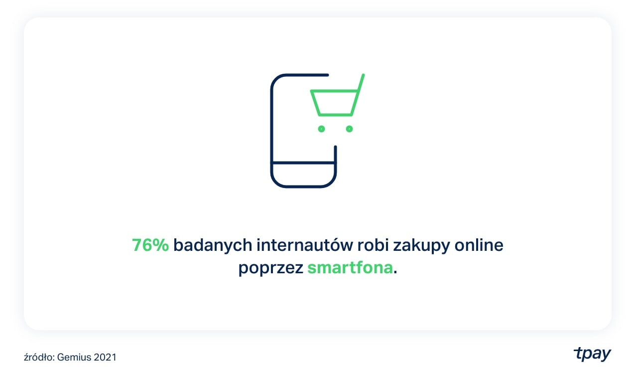 Warto zwrócić uwagę na to, jak sklep wyświetla się na smartfonach, tym bardziej, że podczas zakupów korzysta z nich już 76% osób kupujących w internecie. To wzrost o siedem 7 punktów procentowych w porównaniu do 2020 r.